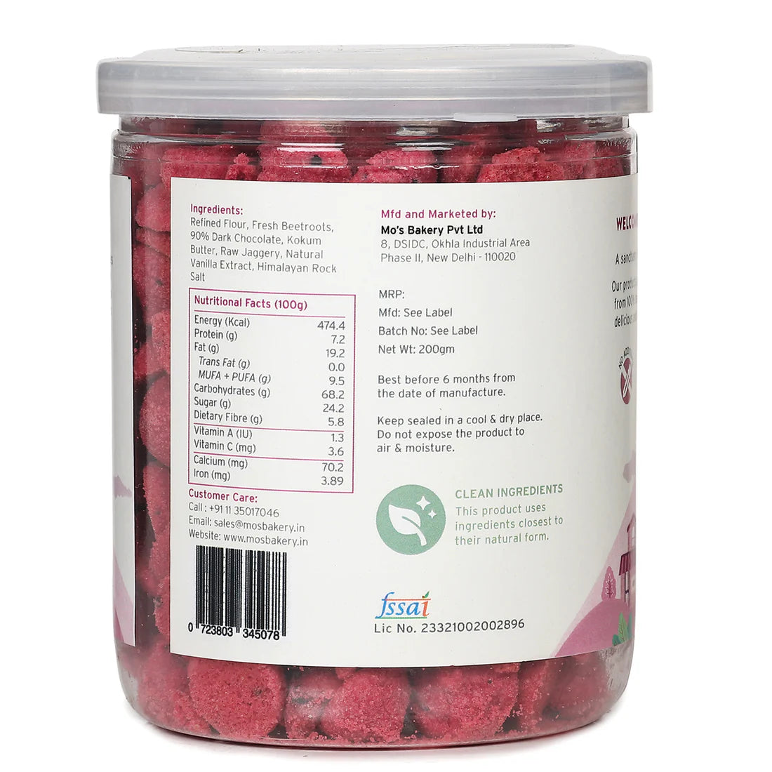 Refined Flour, Fresh Beetroots, 90% Dark Chocolate, Kokum Butter, Raw Jaggery, Natural Vanilla Extract, Himalayan Rock Salt