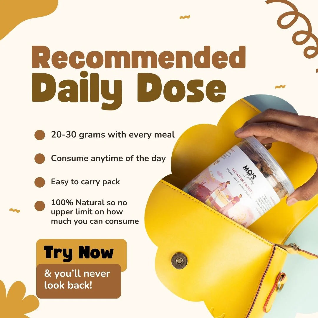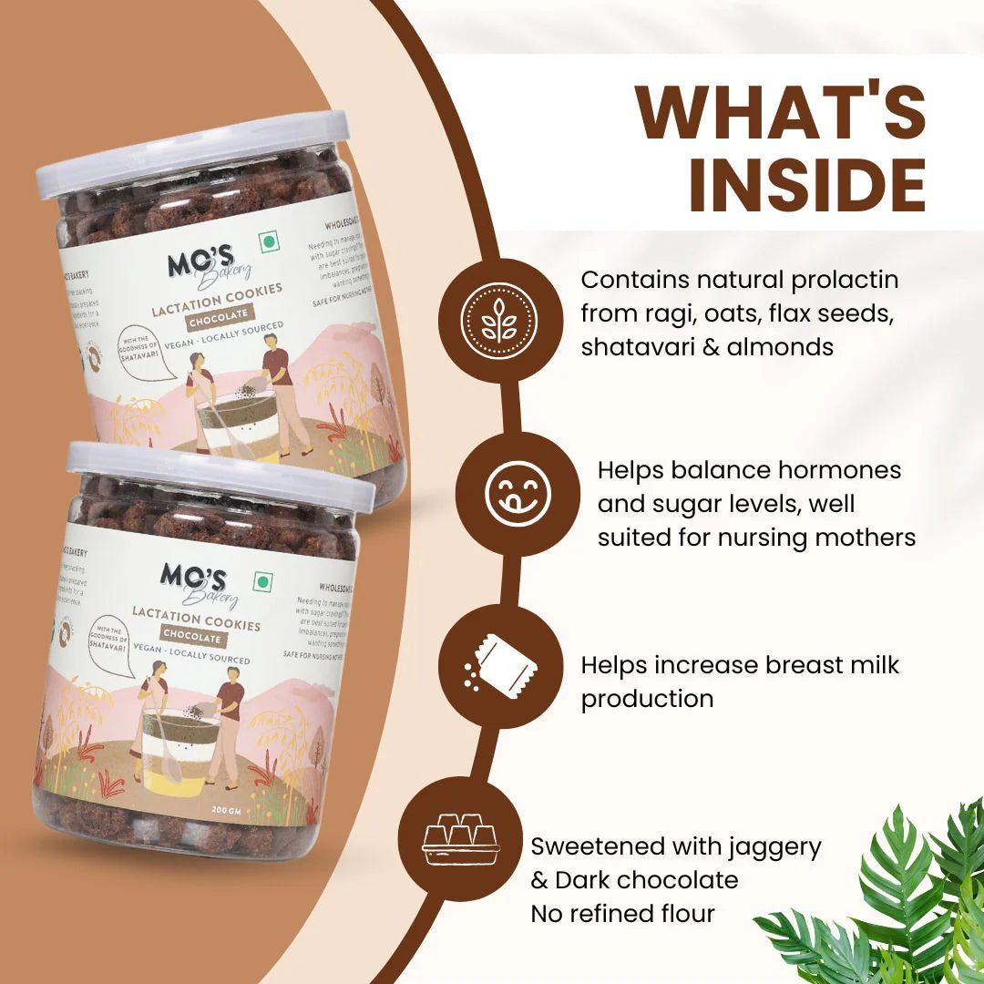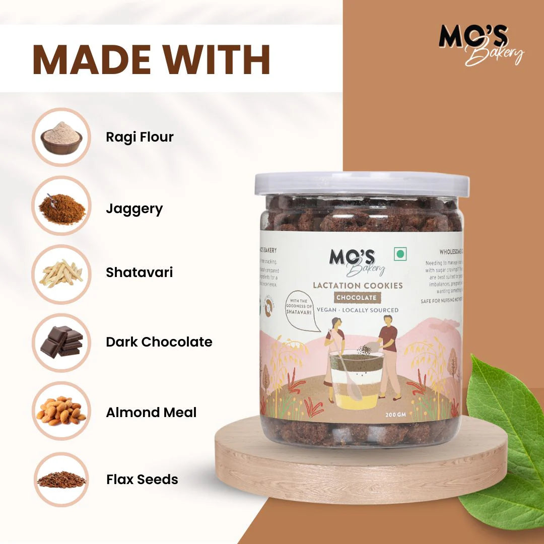 Our Dark Chocolate Lactation Cookies are power-packed with: ragi millet, oats, flax seeds, shatavari and almonds. Well suited for nursing mothers and helps increase breast milk production. It also helps balance hormones and sugar levels! Contains natural prolactin from ragi, flax seeds & shatavari.