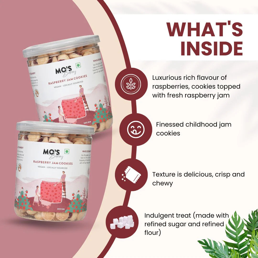 Refined Flour, Kokum Butter, Refined Sugar, Raspberries, Apple Pectin, Natural Vanilla Extract, Himalayan Rock Salt