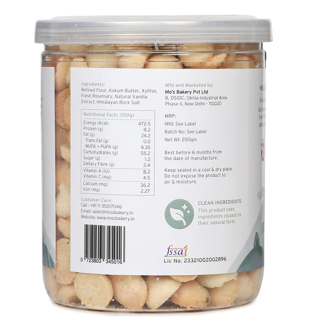 Refined Flour, Kokum Butter, Xylitol, Fresh Rosemary, Natural Vanilla Extract, Himalayan Rock Salt